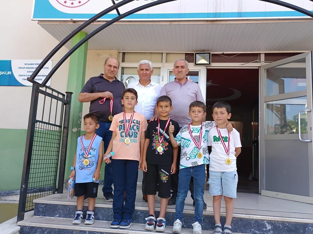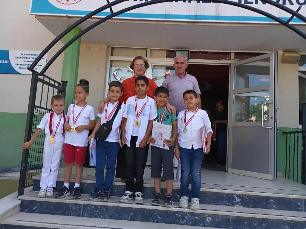 BİRİNCİ GELEN TAKIM OYUNCULRI MADALYALARINI OKUL İDAREMİZ VE SINIF ÖĞRETMENLERİMİZDEN ALMIŞLARDIR.